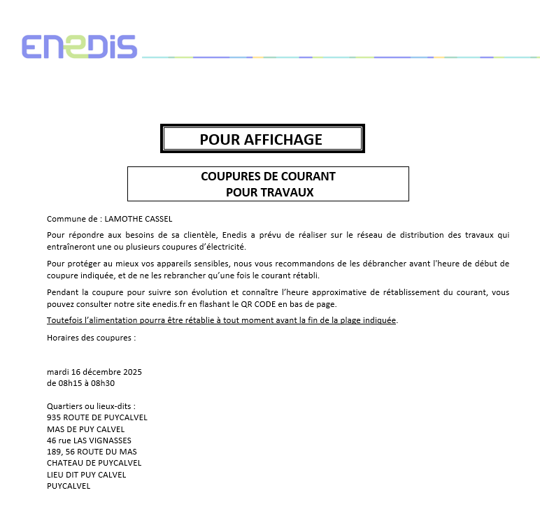 Coupure de courant pour travaux à Puycalvel